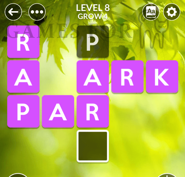 Wordscapes level 8 in the Grow Pack category and Sunrise Group subcategory contains 4 words and the letters AKPR making it a relatively easy level. Open the Wordscapes app. A quick word quiz is a great way to escape boredom while also keeping your brain sharp.